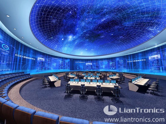 Le grand écran LED UHD panoramique à 360° de LianTronics a été installé dans le hall du centre de commandement du Big Data dans le district de Baiyun, Guiyang, la Big Data Valley de la Chine.